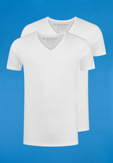 Dit is het moderne ondershirt met een smalle boord en een comfortabele losse fit. Geproduceerd in 100% gekamde katoen waardoor het T-shirt een fijne 'touch' heeft. Verkrijgbaar als 2-pack in O-hals en V-hals in de kleuren wit en zwart.