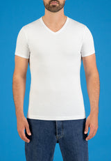 The sturdy rib shirt is best combined with jeans. This shirt made out of special treated cotton has a rough hand feel and comfortable fit lasting 24/7. Available in O-neck and in the colours white, black, grey melange, navy and antra melange.